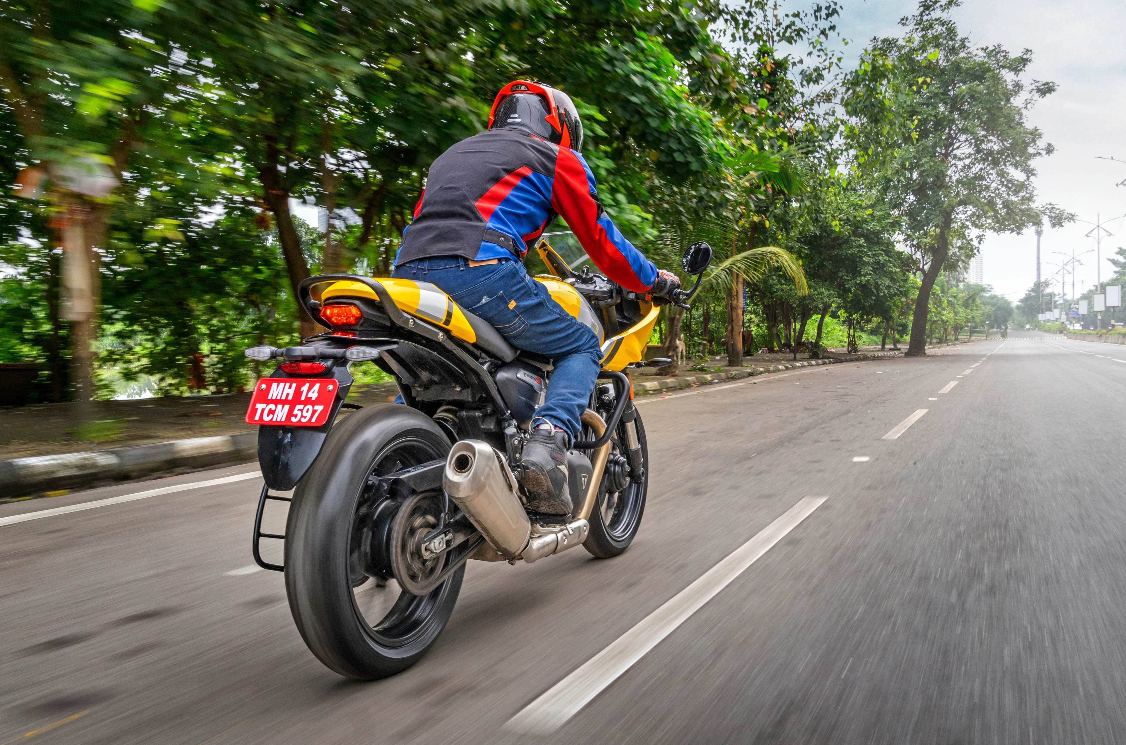 Testing of the Thruxton 400 was conducted on a damp road during the monsoon season