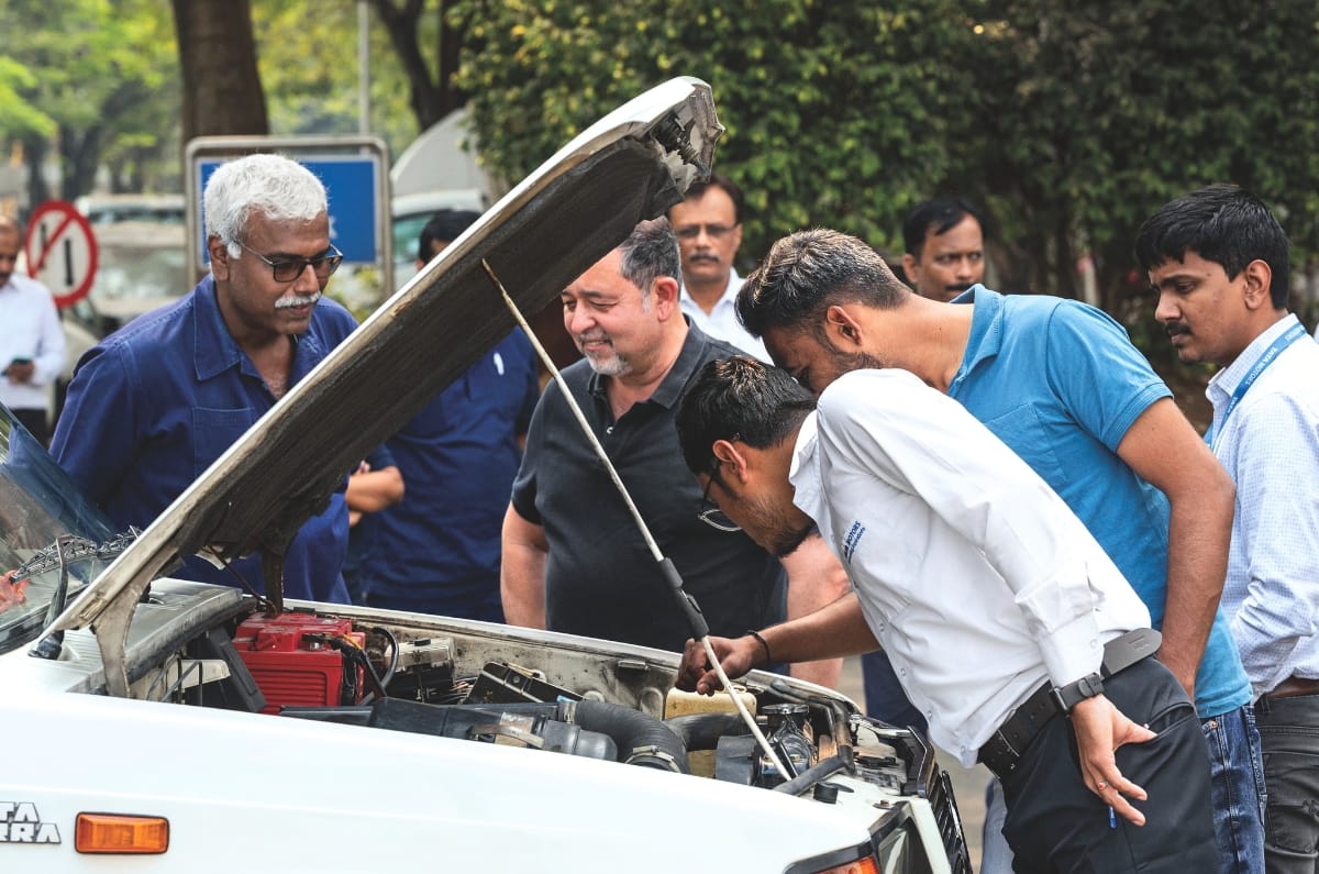 Seeing all three generations together draws in the crowds at Tata’s Pune plant. The word is out, and many cut short their lunch breaks to come and see the classic Sierras. A bunch of three senior line managers strolls up with broad smiles. “We helped build this car”, says one, with immense pride. “I worked on engine assembly,” chips in another, as we peer into the bonnet of the turbo. “This is the 483 TC IC (turbocharged, intercooled),” I repeat from memory. The line managers smile. “We had a tough time packaging the intercooler,” says another, “which is why it is vertically installed”.