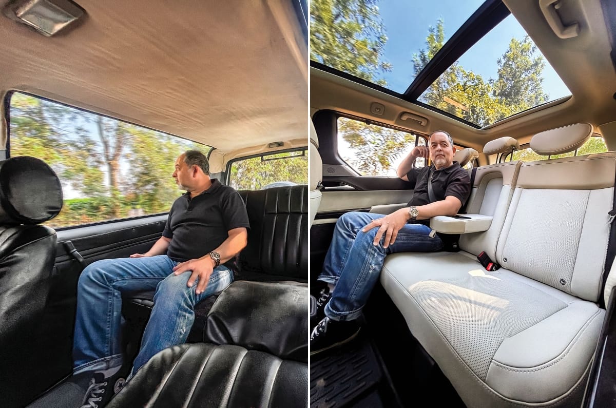 Further up the road, I climb into the back of the original Sierra. The view is breathtaking. Wide, tall, panoramic, the field of view is so good it feels like sitting in a moving glasshouse. We pass a section of tall trees, sun glinting off the tops, and they look amazing – these ‘Alpine’ windows curl up around the edges of the roof. It’s even comfortable sitting in the back, the backrest of the seat nicely reclined and the seat base quite comfortable. I immediately want to be driven over some Himalayan passes. The Sierra owners have already done that.