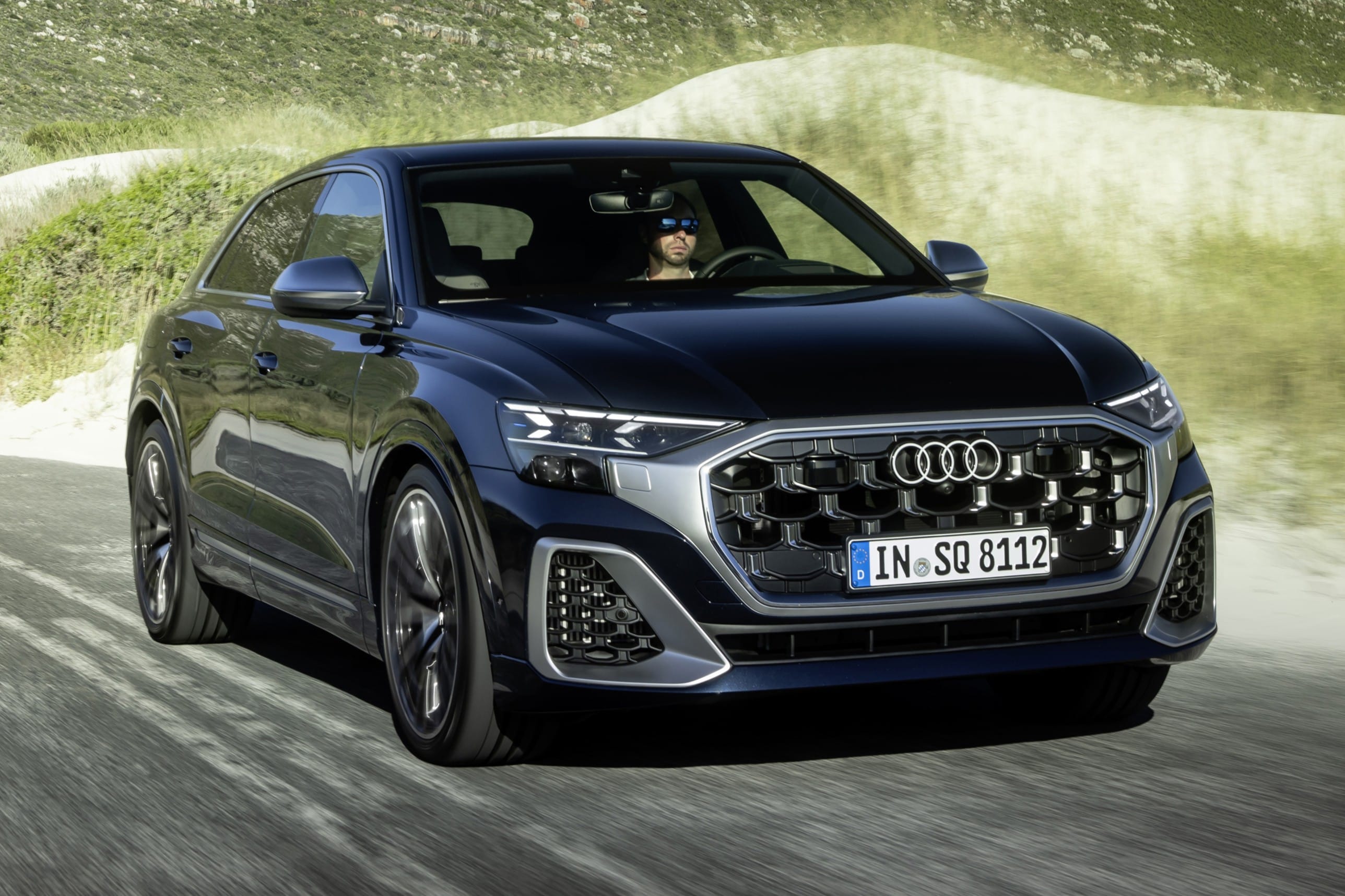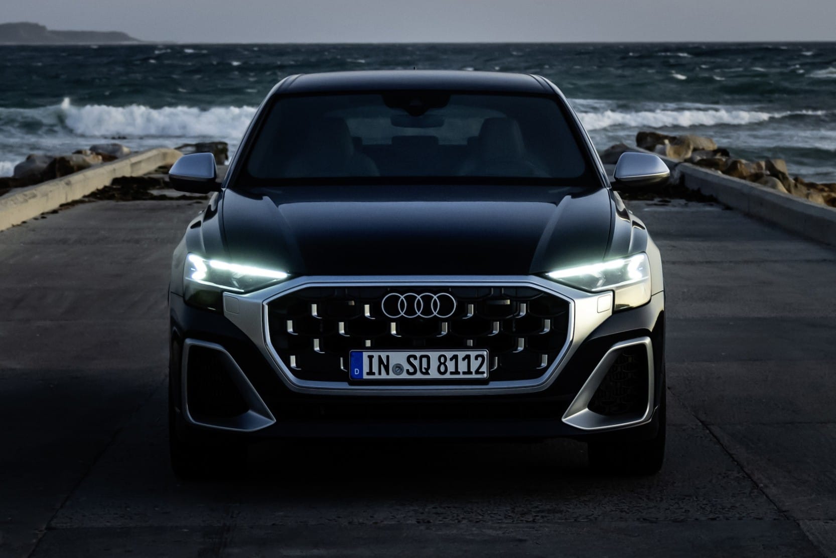 Over the standard Q8, the SQ8 adds chassis upgrades such as adaptive air suspension and standard rear-wheel steering. It also includes an S Sport package comprising red brake calipers, a sport rear differential and active roll stabilisation.
